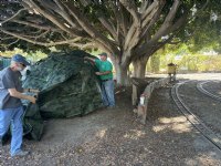 *Kerisjun Jenning,Troop 413, Plant 4 large pine trees and install ground cover at Crenshaw gate. 14-15 July 2020. *Samuel Bernard, Troop 413, Landscape improvements, trim 3 large trees, install new plants, wood chips, and drip lines. From tunnel to club house 8-8-20 *Eric Lyons, Toop 413, install 60 feet of new white picket fence and wood chip ground cover between red car and the depot 8-29-20 *Steven Yi, troop 413, install rock retaining wall on one side of the caboose berm, landscape top of bue chips. 10-10-20 *David Uehara, Troop 413, Install RR tie retaining wall on right side of figure 8 cut. Landscape behind the wall with weed barrier cloth and wood chips. 10-30-20 *Connor Parsons, Troop 860, build a pedestrian bridge and a set of railroad tie steps across from station for direct access to infield. 11-14-20. *Patrick Garrett, Troop 413, hand grade berm next to wood tunnel, install irrigation water drip lines, install three layers of plantings. 12-6-20.
