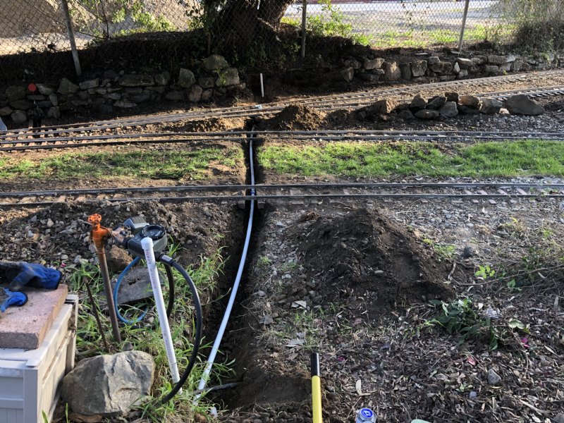 We are having trouble with the squirrels chewing holes in the on ground drip watering lines. So Tom and Dave K started to replace them with under ground water lines. But as always seems to be the case there’s a lot of work involved in upgrading things. |