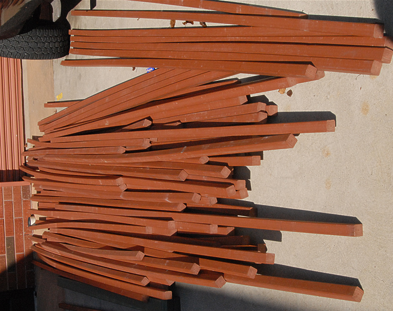 The new order or plastic tie material has arrived. After I finish recuperating from my heart attack after unloading, it will be time to chop them up into 16 inch lengths. The 2x2s are 12 feet long.